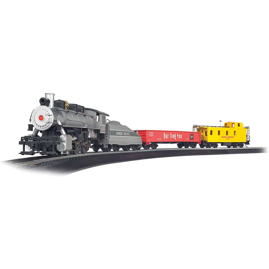 The power of a steam engine is guaranteed to be what you need to master any rail yard shunting job with ease. An 0-6-0 locomotive with Union Pacific's® distinctive greyhound color scheme and slope tender sends a puff of smoke skyward as it prepares to position rolling stock for pickups, much like a game of strategy. Plan your moves, assemble a consist, and send freight on its way with the Yard Master!