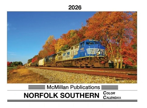 The 2026 Norfolk Southern Calendar from McMillan Publishing features 13 large views of trains, one scene to a month: January 2026 through January 2027. The calendar opens to an eye-catching 14 x 19-1/2 inches. The calendar grid features number blocks suitable for note taking.
