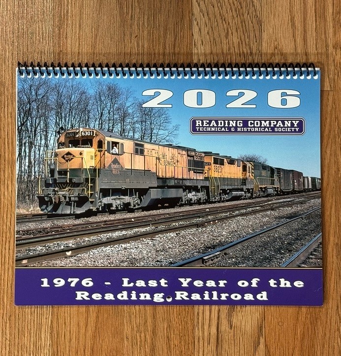 The RCT&HS 2026 twelve month railroad calendar is now available featuring the photos of the Reading Railroad.
