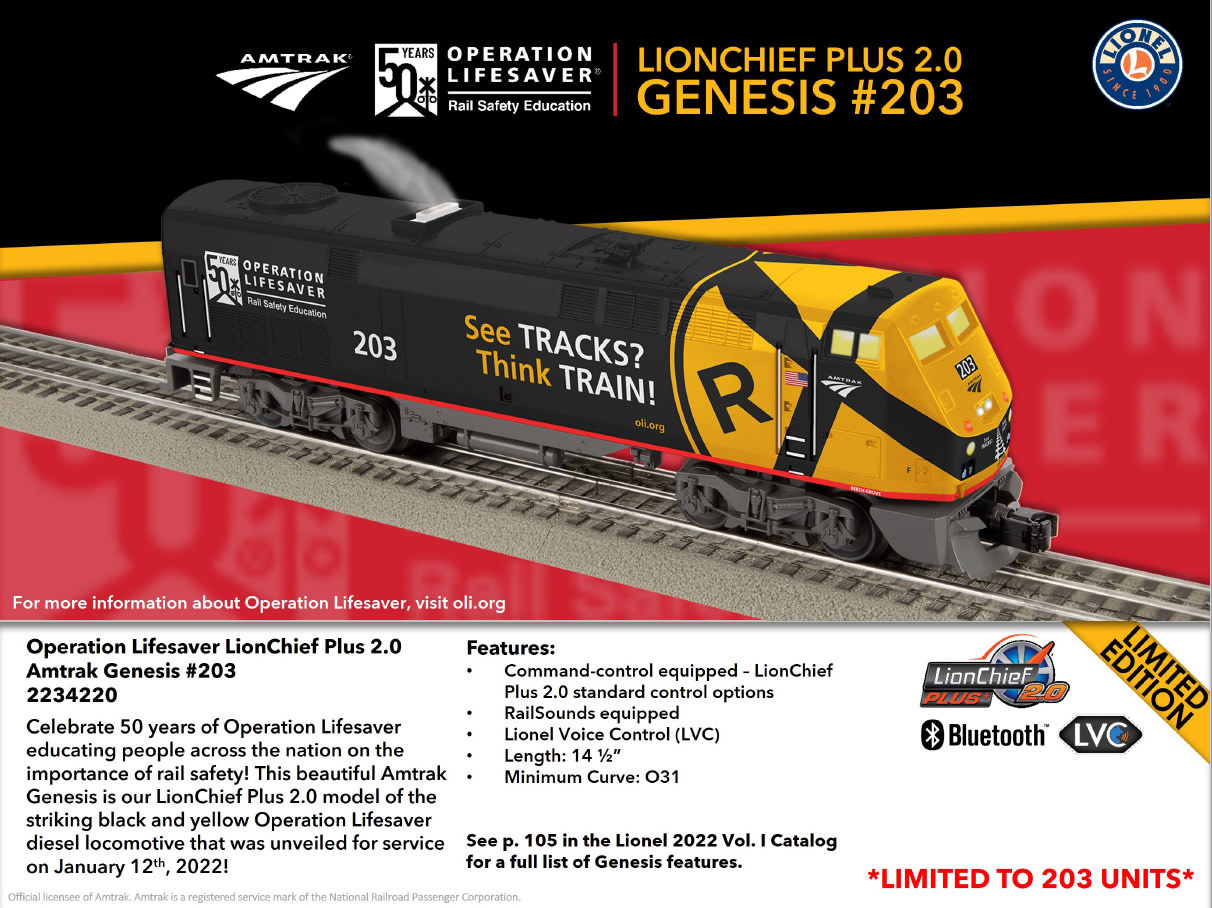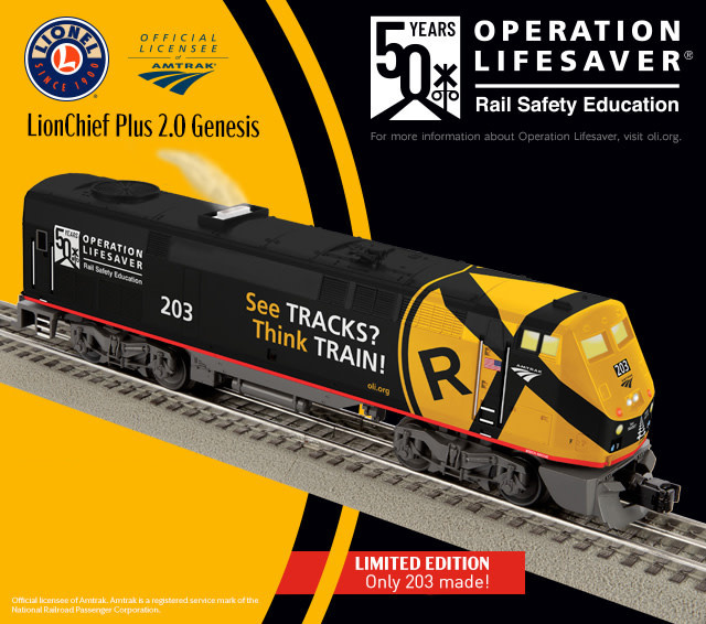 We are excited to celebrate 50 years of Operation Lifesaver educating people across the nation on the importance of rail safety! This beautiful Amtrak Genesis is our LionChief Plus 2.0 model of the striking black and yellow Operation Lifesaver diesel locomotive that was unveiled for service on January 12th, 2022!