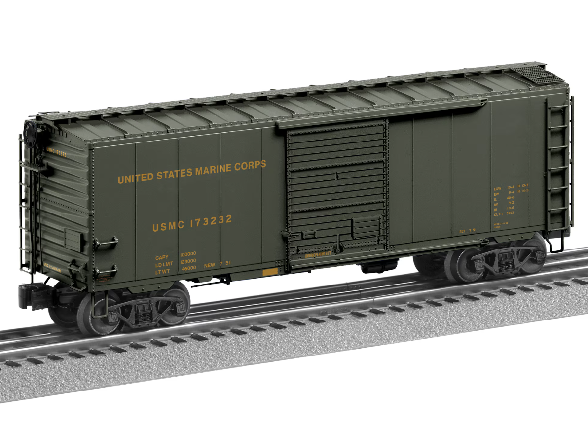 Our latest series of patriotic boxcars puts a different spin on the "rhythm of the rails!" As these cars travel along, you'll hear the familiar "clickety clack" but in time to well-known military marches. In addition to the cars themed with our Union Pacific WWII poster art train, we are also offering them based on the large 1951 order for PS-1 boxcars by the Department of Defense in Army, Navy, Marine and Air Force decoration. Sounds play automatically in motion and work with any O Gauge control system.