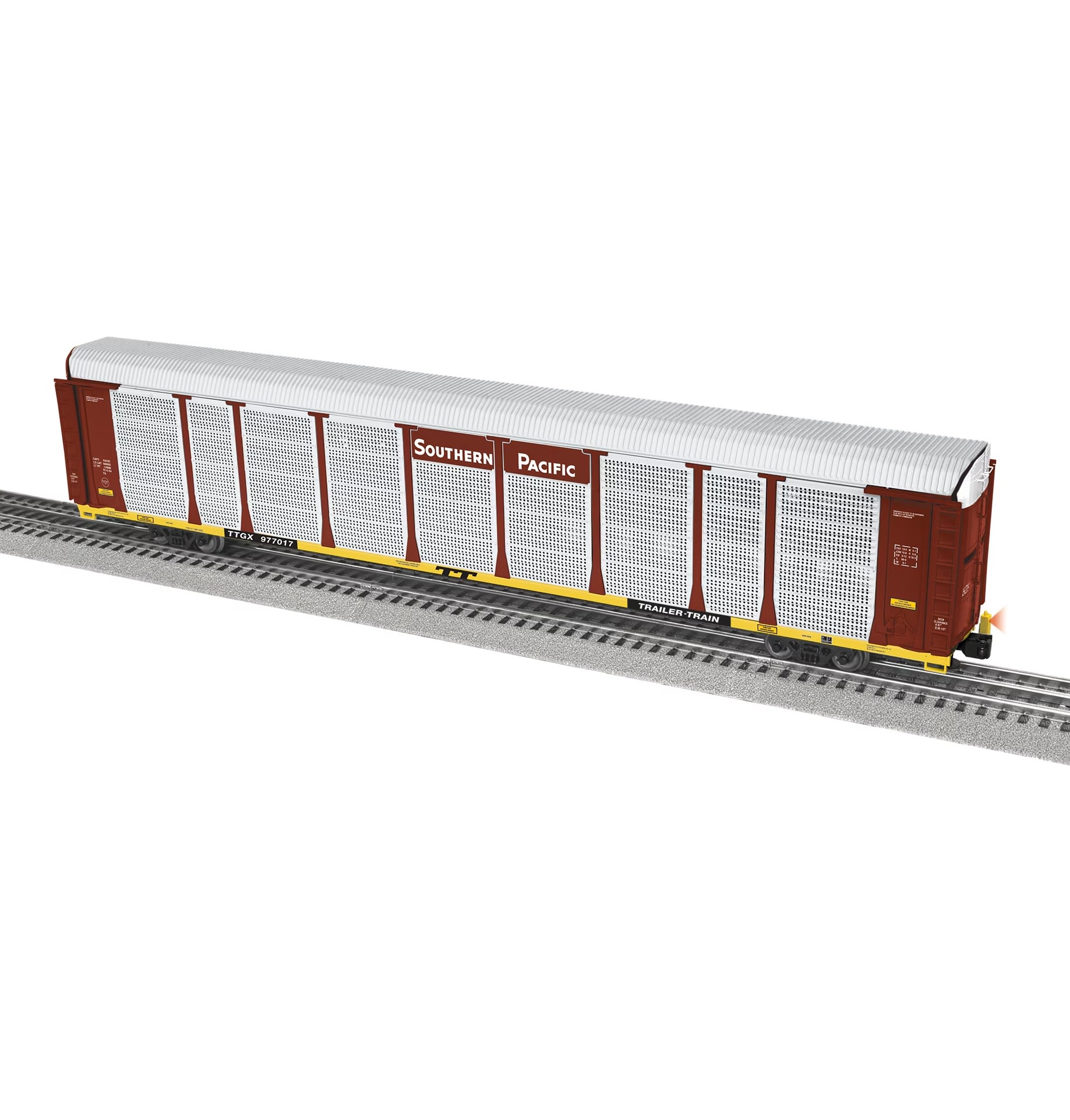 Delivering sound and action for modern-era trains, these new VISION Autoracks offer fun new features in our full-scale 89' cars. With full LEGACY Control, you'll be able to activate loading and unloading sequences. On the move, the car will produce realistic rail sounds. But don't jar it too hard or you'll set off the car alarms inside, complete with sounds and lights. The car also comes equipped with a working end-of-train-device on the operating rear coupler which can be easily removed if you want to add multiple cars mid-train. With Kinematic Couplers, these massive cars can operate on curves as tight as O-54. Cars also include die-cast trucks with rotating bearing caps, opening end doors, volume control and max/min switch.