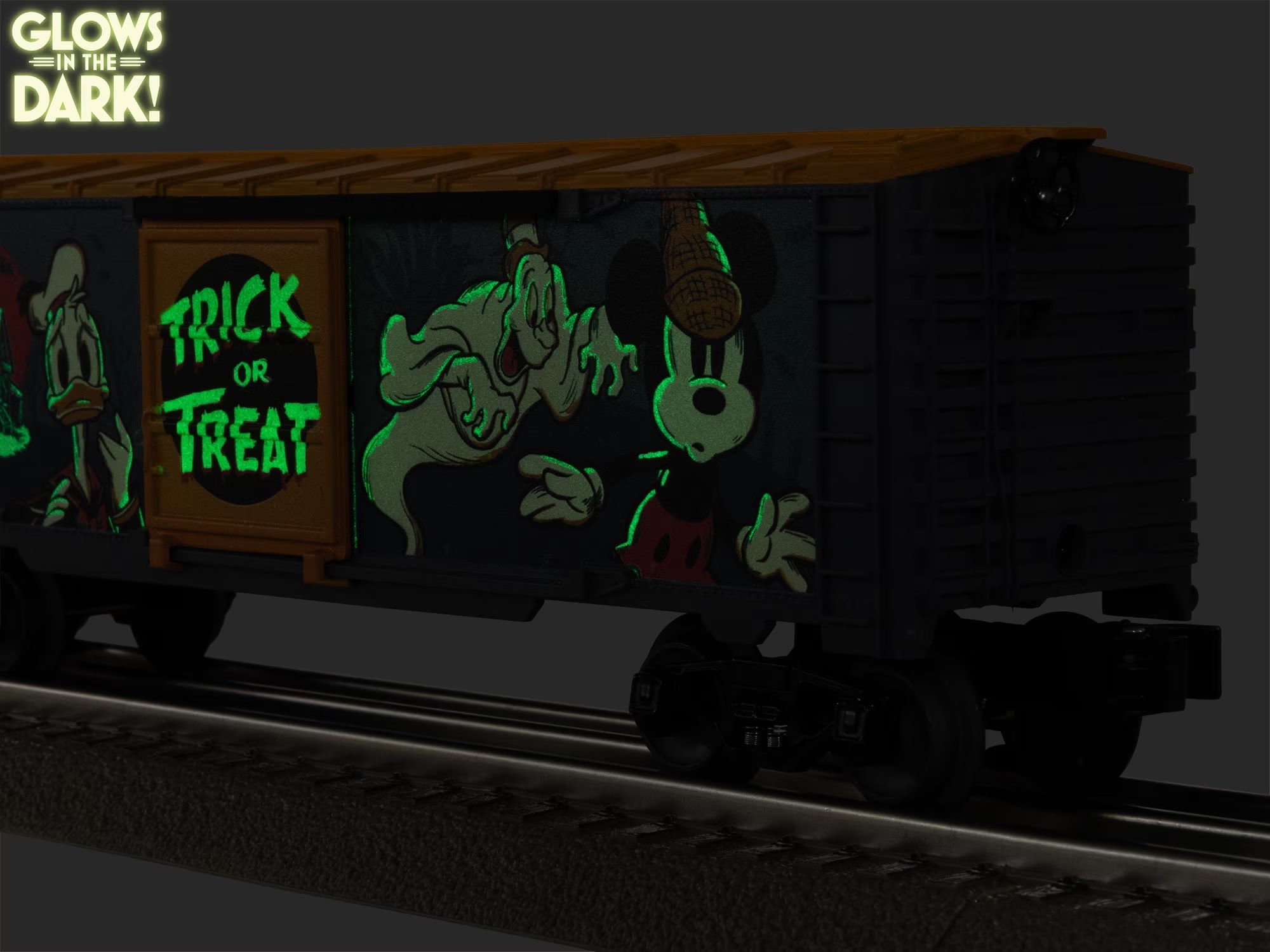 Get ready for a spook-tacular Halloween with our Glow in the Dark Halloween Boxcars featuring Disney fan favorites like the 1937 classic "Lonesome Ghosts" cartoon, "The Nightmare Before Christmas," "Stitch" and "Star Wars™"! Start a new family tradition and add some Disney magic to your Halloween layout! ©Disney