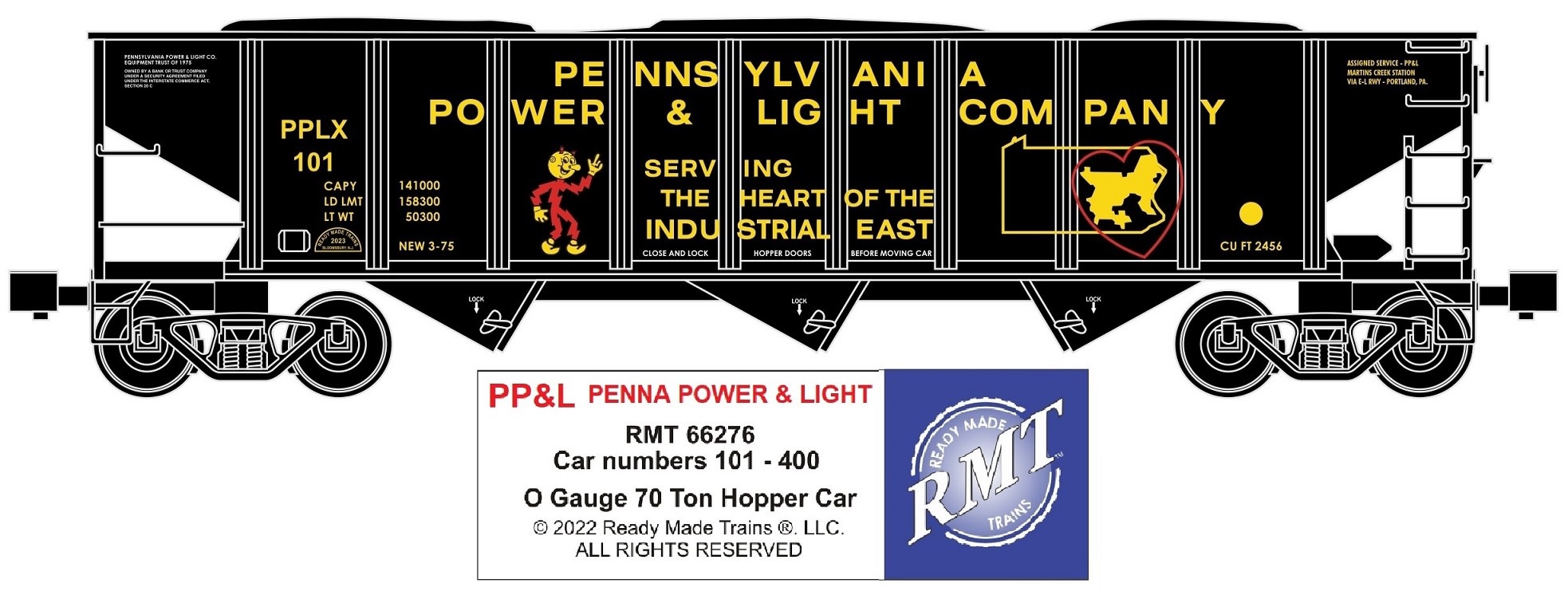 RMT 66276 PPL 70 Ton 3-Bay Ribbed Side Hopper Car w/Coal Load O Gauge PRE-ORDER, ETA: Fall 2025