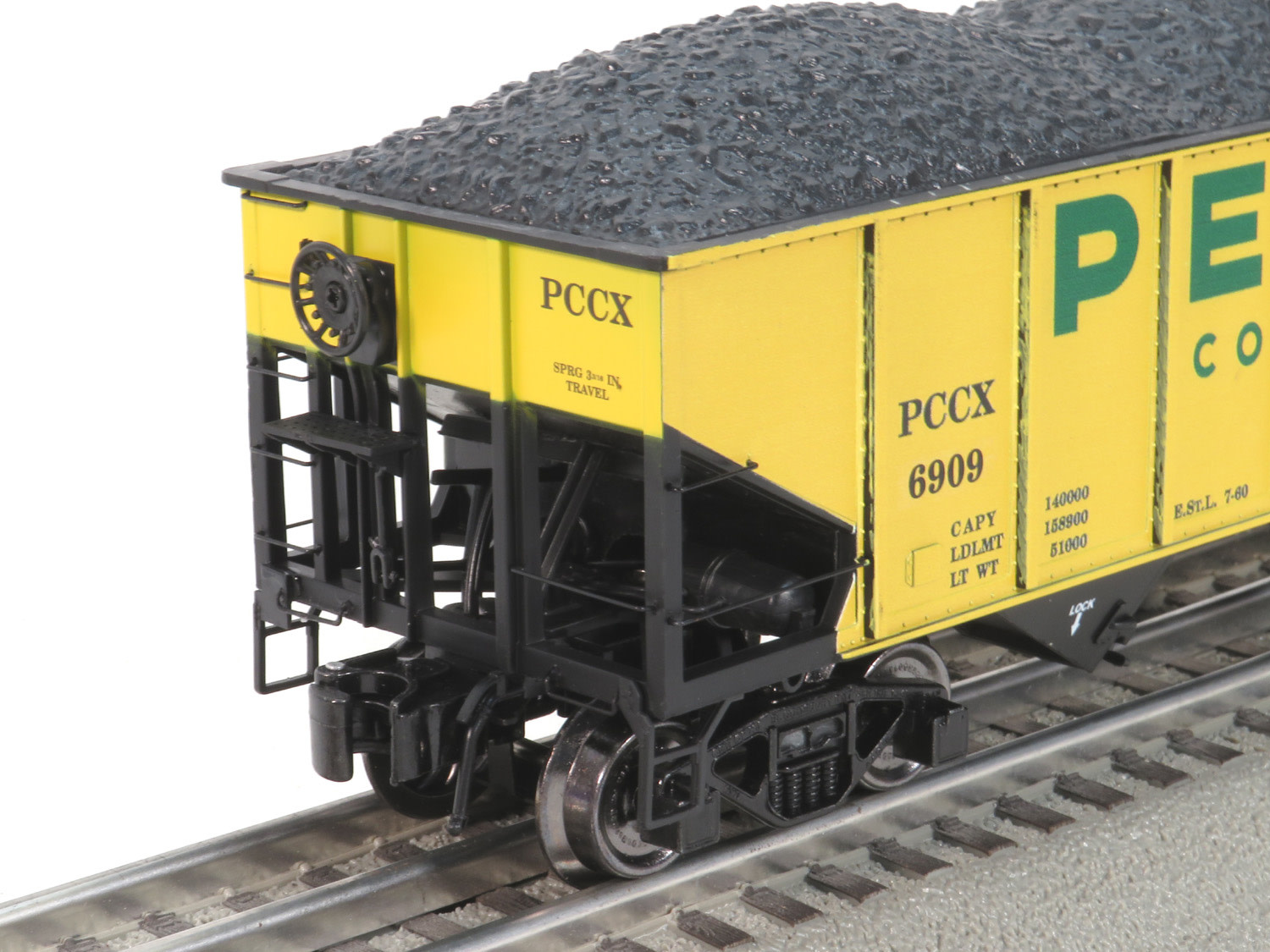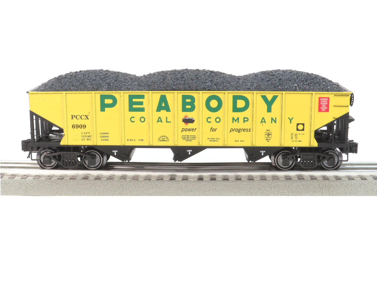 RMT 66299-184 Peabody Coal Co. 70 Ton 3-Bay Ribbed Side Hopper Car w/Coal Load O Gauge # Rail