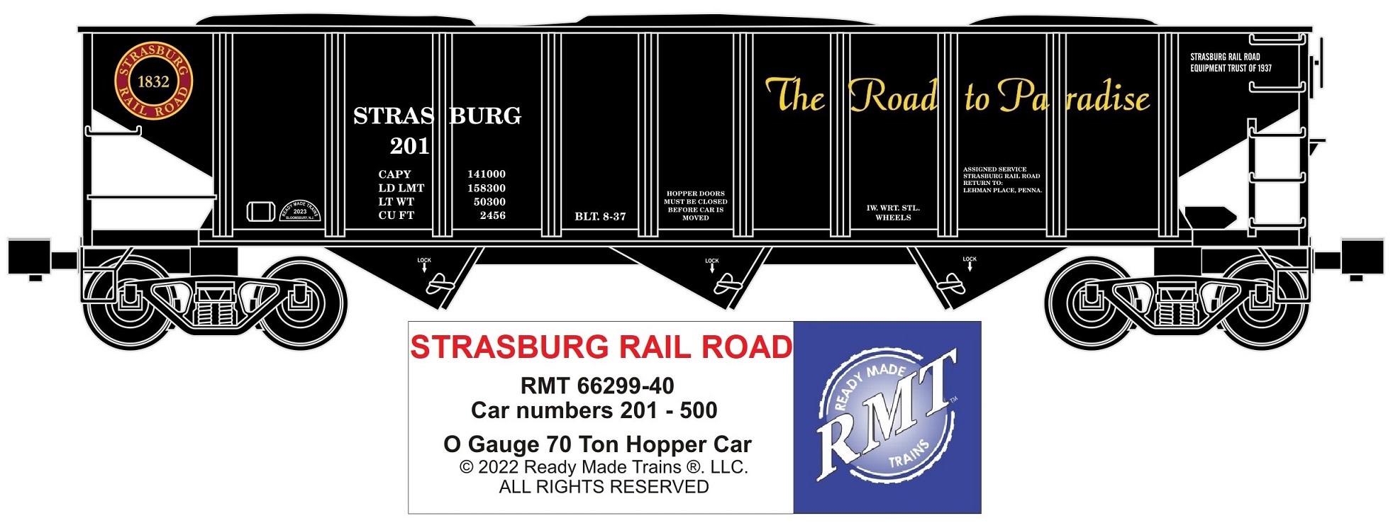 RMT 66299-40 SRR 70 Ton 3-Bay Ribbed Side Hopper Car w/Coal Load O Gauge 3 Rail PRE-ORDER, ETA: Fall 2025
