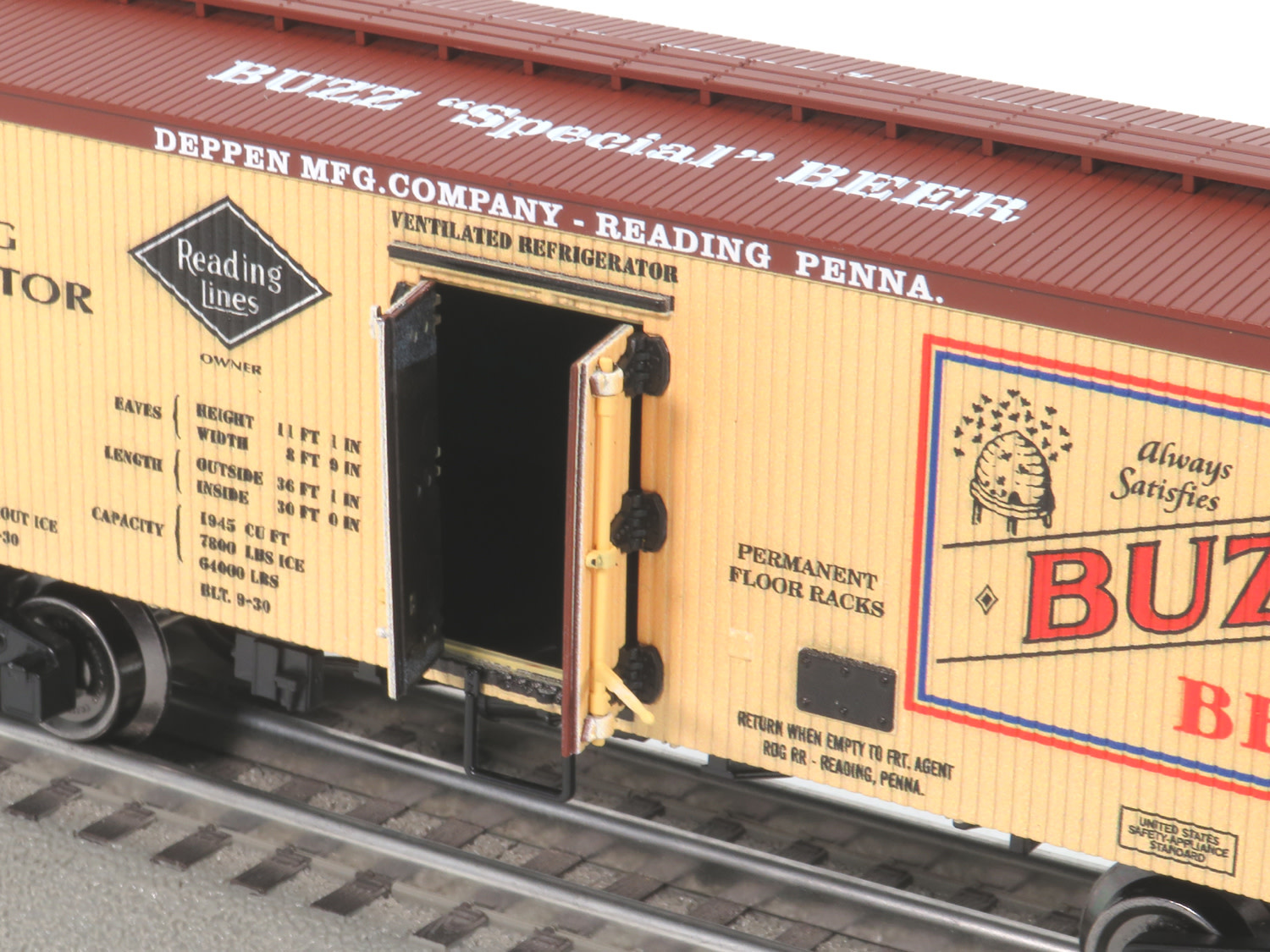 36ft WOOD SIDE REEFER CAR features:
