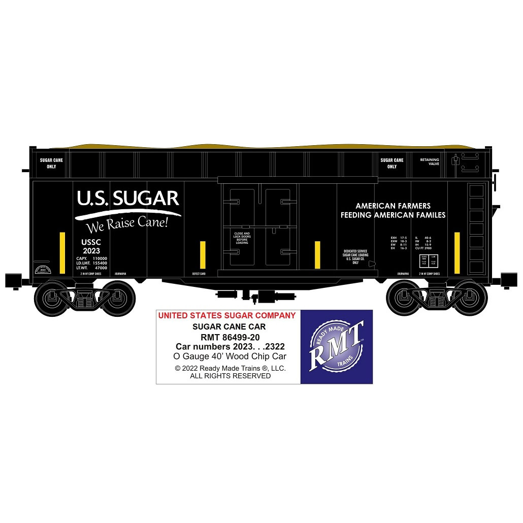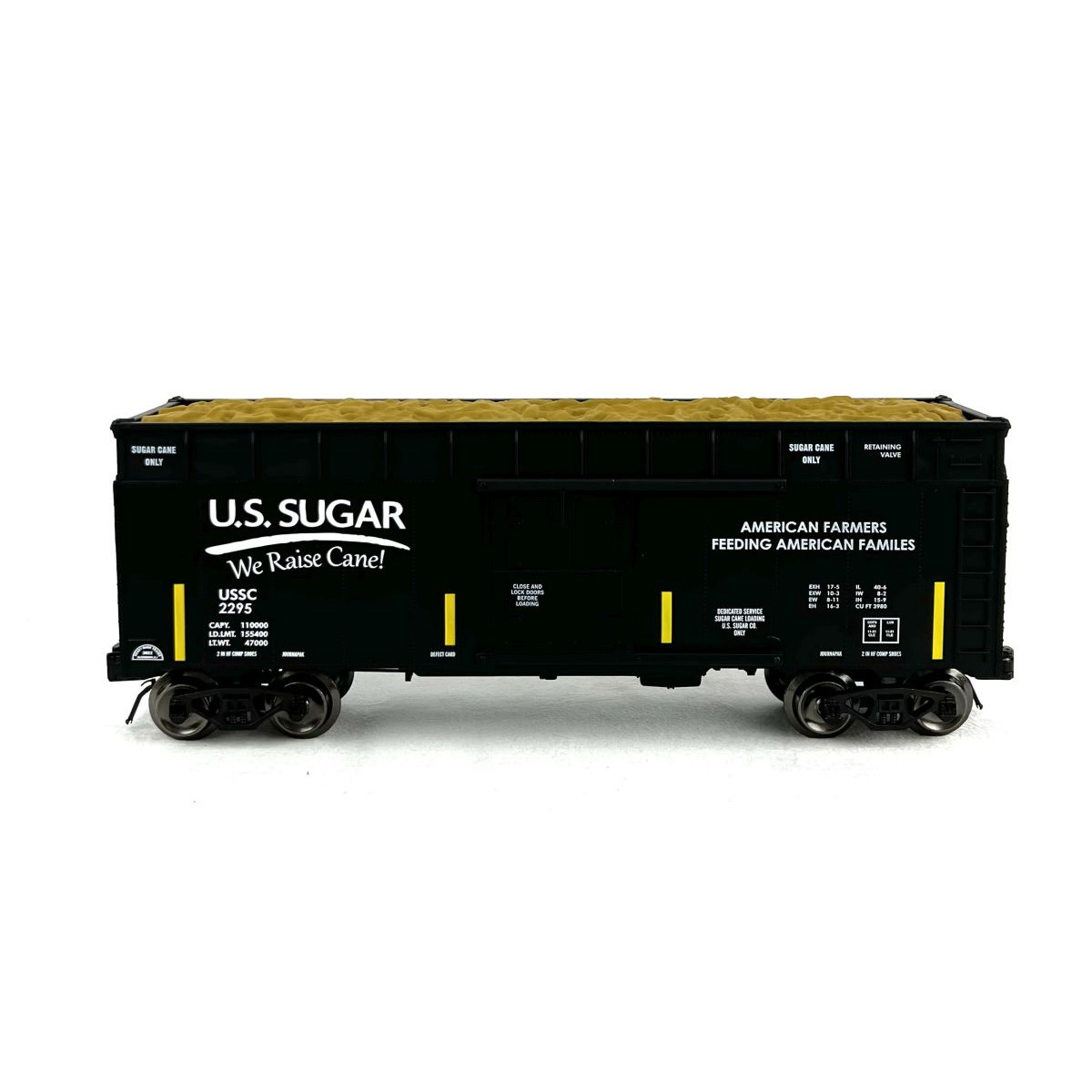 Referenced to an actual USSC sugar cane car, each car features a sugar cane load, detailed graphics and other USSC identification.