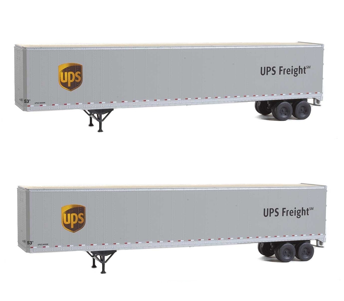 Walthers 949-2460 53' Stoughton UPS Trailer 2-Pack - Assembled United Parcel Service Freight (Modern Shield Logo; gray, brown, yellow)