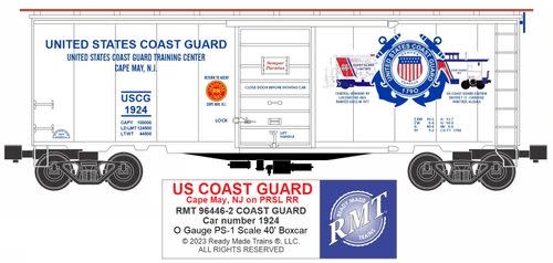 This US COAST GUARD boxcar references the USCG Training Facility located in Cape May, NJ that was formerly served by the PRSL-PENNSYLVANIA-READING SEASHORE LINES RR and features authentic USCG and PRSL full color logos.