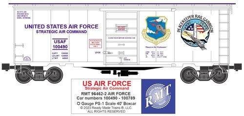 This US AIR FORCE boxcar references both the Strategic Air Command and the Peacekeeper Railroad Missile Train. This train actually existed during the Cold War era. Unique authentic logos are incorporated into the boxcar artwork.