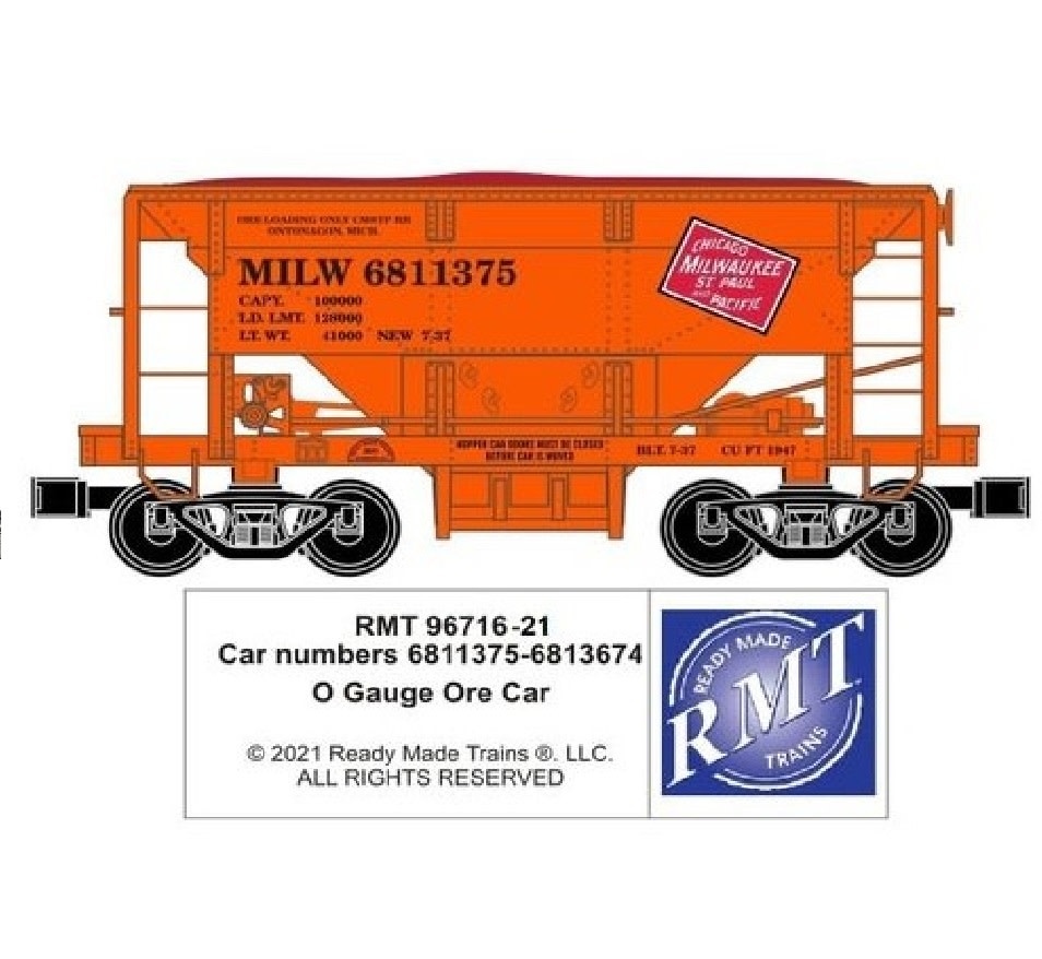 O-gauge Dimensions: 7 1/4in L over couplers x 3inH to top of ore load x 2 5/8in W