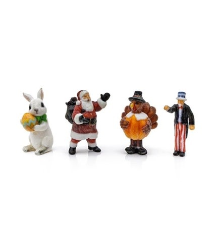 Holiday Figures include holly, jolly elf himself - Santa Claus - and Uncle Sam giving his "I Want You" salute. They also include the Easter Bunny ready to hide some eggs and the Thanksgiving delight also known as Turkey Tom. Each Find Me Figure is highly detailed and scale-specific.