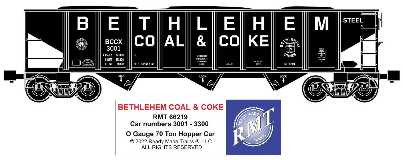 RMT - 66219 Bethlehem Steel 70 Ton 3-Bay Hopper Car