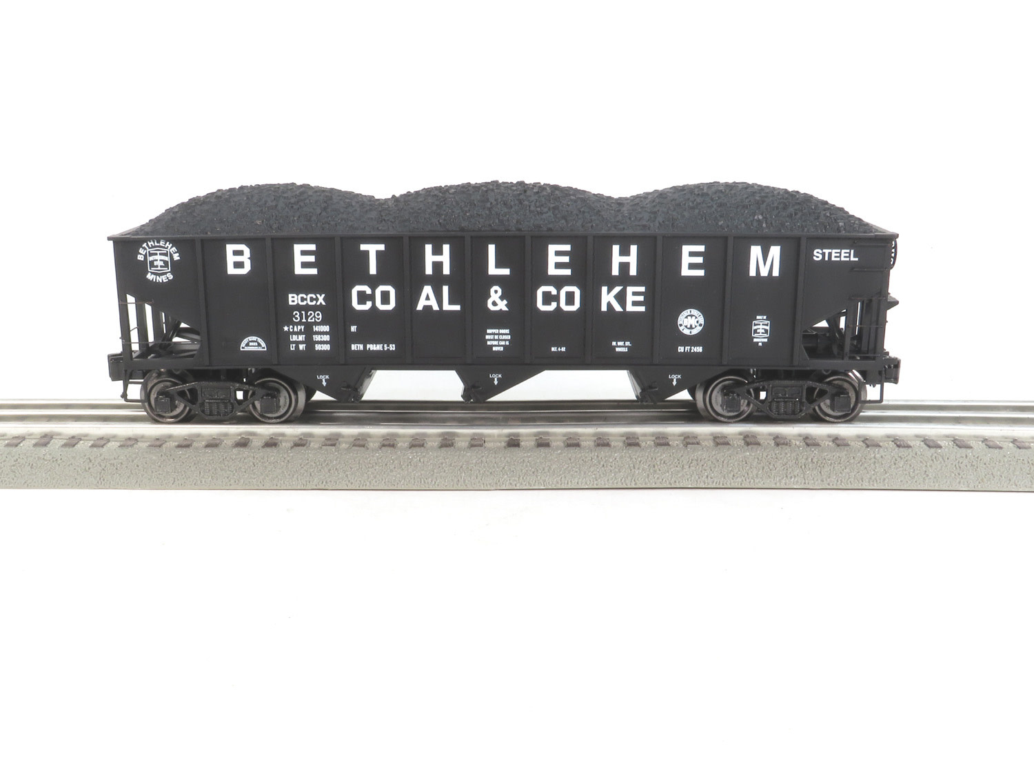 Bethlehem Steel 70 Ton 3-Bay Ribbed Side Hopper Car w/Coal Load