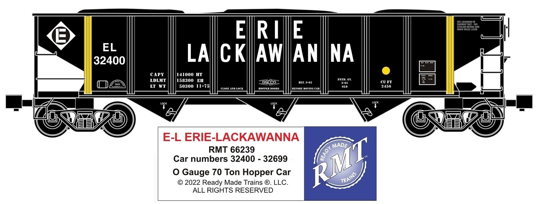 Erie 70 Ton 3-Bay Ribbed Side Hopper Car w/Coal Load