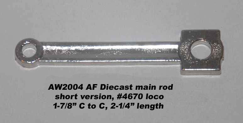 Short diecast main rod for American Flyer wide gauge. 1 7/8" from center to center. Approx 2 1/4" long.