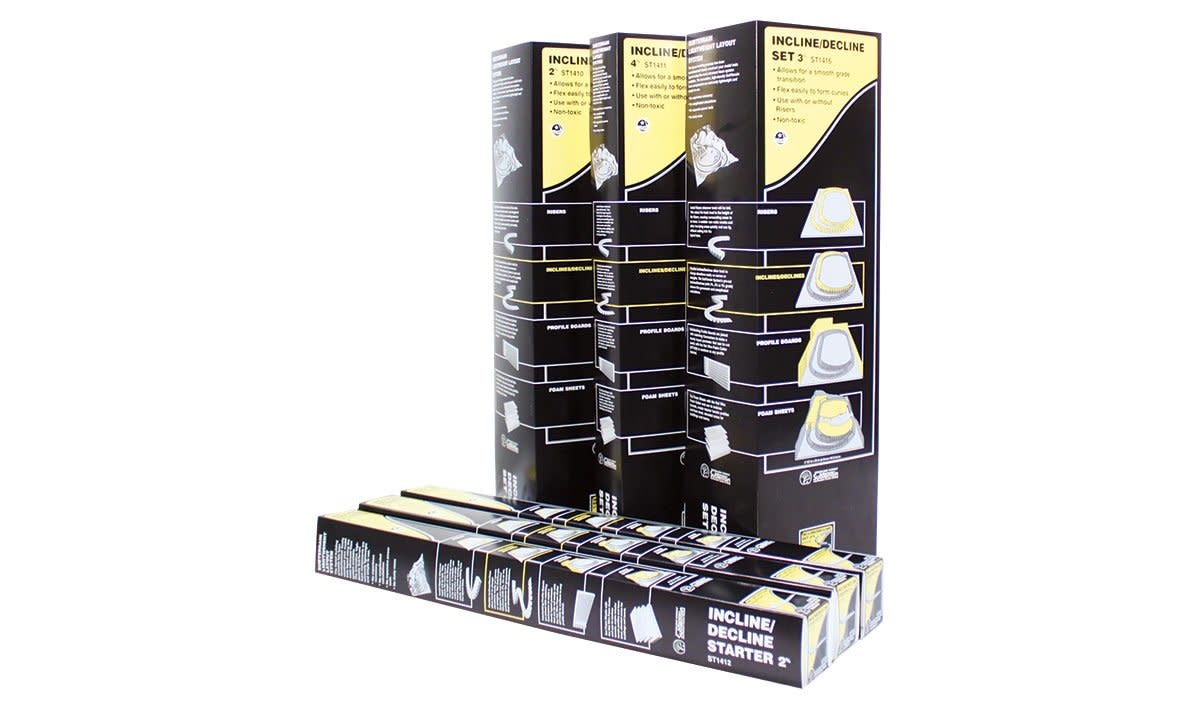 Incline Starters are wedges of high-density foam used to start your track on an incline or decline. Each piece in a package elevates/lowers the track to/from a designated number of inches within a 24" stretch, allowing for a smooth transition from one height to another.
