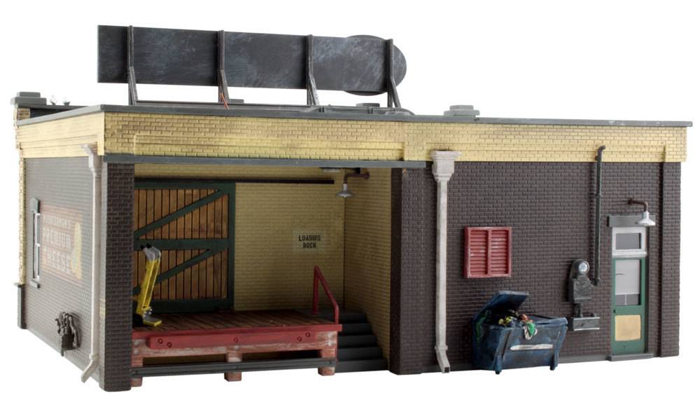 Modeled after the independently owned grocery stores that began sprouting up in the early 1900s and that can still be seen today in cities and small towns throughout America. Details and accessories include loading dock w/dolly, large display windows, awnings, kiddie ride and more. The building features printed interior, window treatments and interior/exterior lighting. Building features two white interior lights and one amber-colored exterior light, each with its own dimmer control.